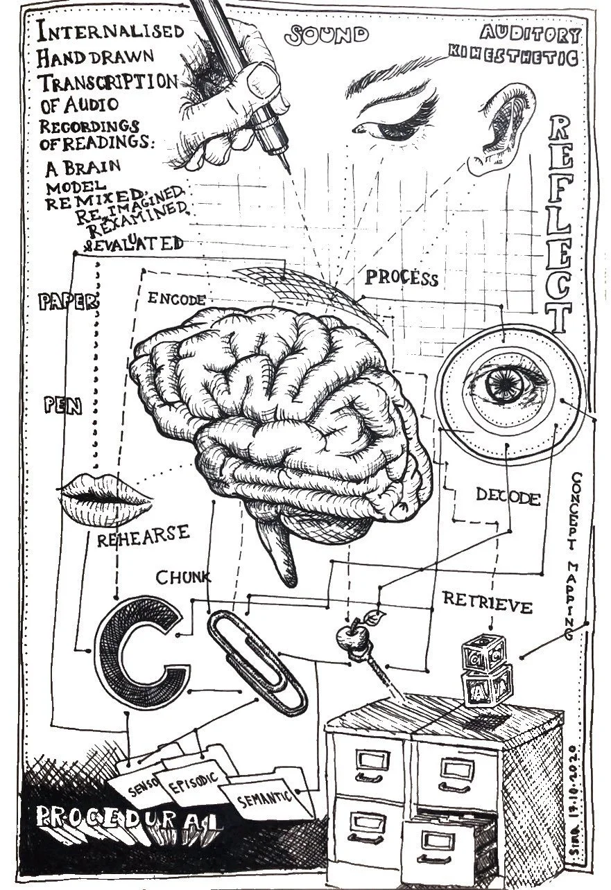 These illustrations are part of a series that was made as live drawings to either lectures, meetings, or audio recordings of readings. “Culturally Relevant Pedagogy is one of my favorites for the sense of flow I experienced when listening and drawing. The second one, “how my brain works” is a synthesis of my own on all the readings about memory, working memory, and how people learn. 2021